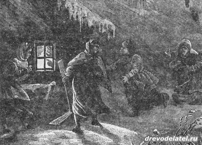 «... Вечерку делали черти. На Крещенье было это. Сделали вечерку, и черти омрачили девок. Девки с имя пляшут. А девчоночка за печкой сидела. Её не омрачили, не увидали её. Она взревела: