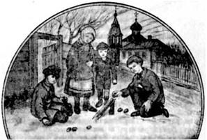 На вербной неделе торговцы устраивали вербный базар. По целой улице ставили много-много лавок, одну возле другой, и чего-чего там только ни продавали: и игрушки разныя — куклы, лошадки, барашки, оклеенные настоящими перьями петушки, которые дрались друг с другом, тележки, тачки, лопатки и разныя другия вещи; были и картины в красивых рамках и сами рамочки отдельно, и книжки — с картинками и без картинок — и всевозможныя яички для Пасхи, одни с сюрпризами, цыплятками, куколками, посудой и даже духами, другия простыя — деревянныя и каменныя для «катанья» (так называлась детская игра в пасхальное время), сахарныя и шеколадныя для еды и даже красивыя стеклянныя яички, просто на стол или на комод поставить и любоваться.