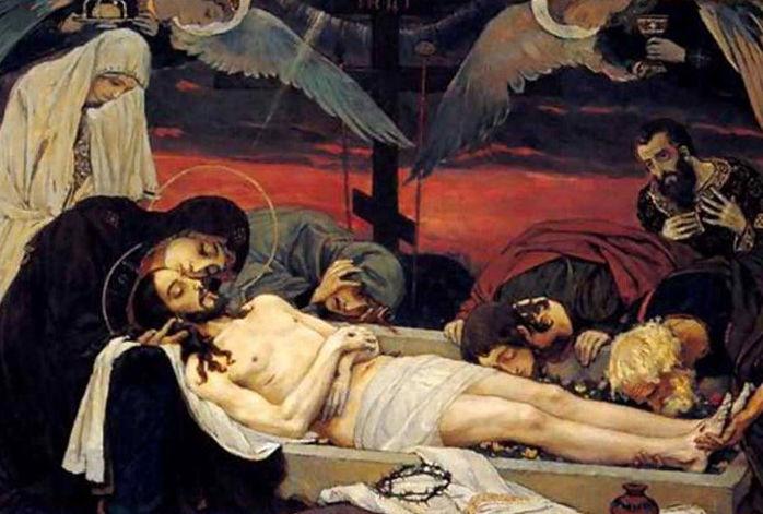 В два часа дня стали собираться к выносу Плащаницы. В церкви стояла гробница Господа, украшенная цветами. По левую сторону от неё поставлена большая старая икона «Плач Богородицы». Матерь Божия будет смотреть, как погребают Её Сына, и плакать... А Он будет утешать Её словами: Не рыдай Мене, Мати, зрящи во гробе... Возстану бо и прославлюся...