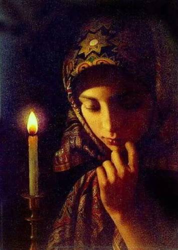 От свечки к свечке потянулся огонь, и вся церковь стала похожа на первую утреннюю зарю. Мне очень захотелось зажечь свечу от девочки, стоящей впереди меня, той самой, которая рассмеялась при взгляде на Гришкино лицо. Смущённый и красный, прикоснулся свечой к её огоньку, и рука моя вздрогнула. Она взглянула на меня и покраснела.