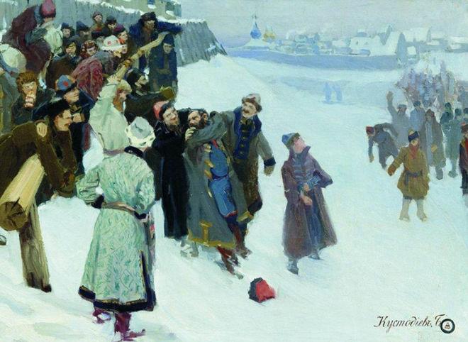 Но если кулачные бои, как обломок тёмной эпохи Средневековья, мало-помалу исчезают с лица русской земли, то зато в полной силе сохранился другой старинный обычай, не имеющий, впрочем, ничего общего с грубой и дикой дракой — это русский карнавал.