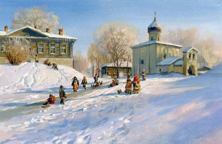 От людей пахло блинами. Богатые пекли блины с понедельника, а бедные с четверга. Мать пекла блины с молитвою. Первый испечённый блин она положила на слуховое окно в память умерших родителей. Мать много рассказывала о деревенской Масленице, и я очень жалел, почему родителям вздумалось перебраться в город.