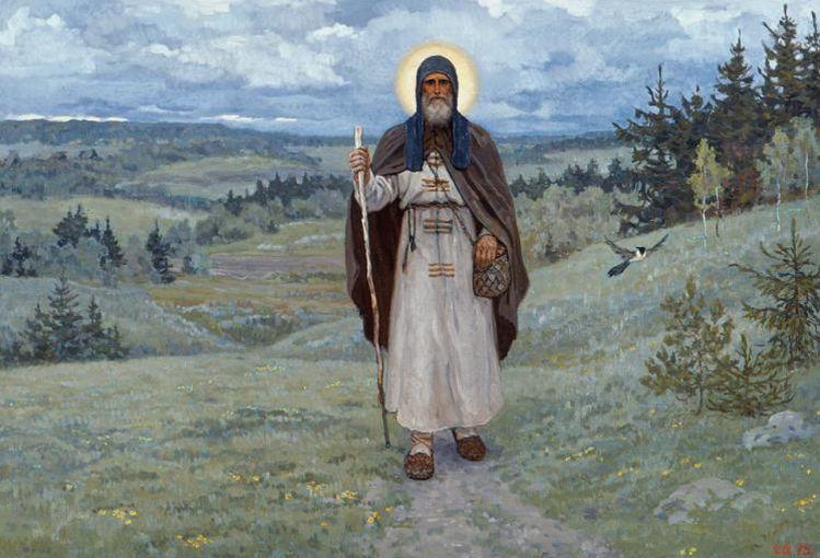Снился мне грядущий Великий Пост, почему-то в образе преподобного Сергия Радонежского, идущего по снегу и опирающегося на чёрный игуменский посох.