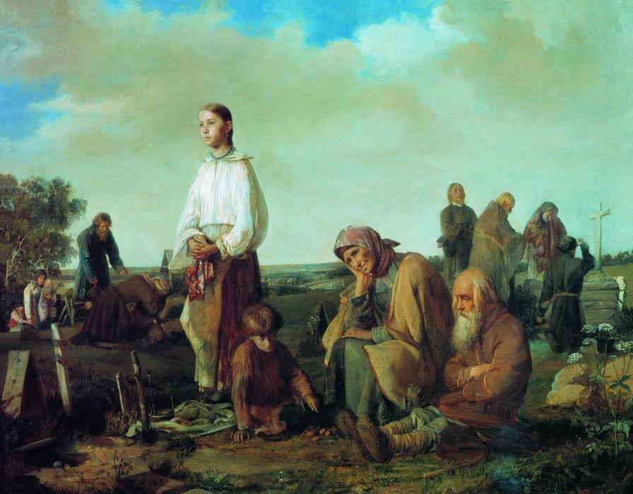 «Сегодня «усопший праздник»... сегодня поедем на могилки, скажем усопшим ласковым шепотком: «Христос Воскресе, родимые, усопшие рабы Божии! радуйтеся, все мы теперь воскреснем!» (И. Шмелёв «Лето Господне»).