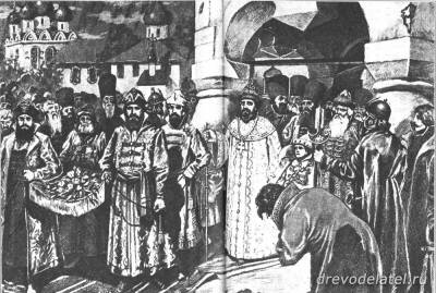 В 1649 году в половине мая, по приезде царя Алексея Михайловича в Сергиев монастырь, наступил холод. Государь по-прежнему совершал все свои выходы к церковным службам, но уже в тёплом платье. Так, во время всенощного на государе было надето: «зипун, отлас бел, у него обнизь по черватому бархату городы; ферези теплые, камка ала, испод пупки собольи; однорядка, сукно зелено, нашивка кизылбаская с круживом; шапка, скорлат черват с пухом, об одной прорехе, с запоною. Посох троецкой, стул, подножье холодное. А было то платье на государе для ненастья».
