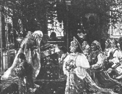 Всё это блистало золотом, серебром и дорогими каменьями. В соборе пред вечерней царь снимал свой наряд и надевал новую смену своих царских одежд, в которых и возвращался во дворец.