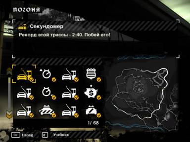 чтобы «Need for Speed Most Wanted» был пройден на все сто процентов, нужно не только победить абсолютно во всех гонках Карьеры, которые игрок в своё время не выбрал для обхода соперника в Карьере (но это уже чистый отдых и забава – ведь теперь у Вас натюнингованный и прокачанный, самый лучший автомобиль, и побеждать в недоигранных гонках Вы будете играючи, с улыбкой вспоминая былые трудности и неудачи), но и победить во всех гонках в списке Погонь.