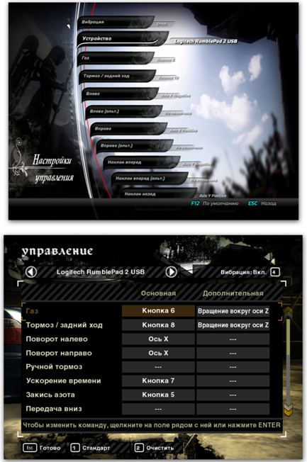 Многие игры автоматически определяют геймпад, в некоторых играх (например, тот же«Need For Speed Most Wanted») даже уже назначены стандартные кнопки, но везде я поменял управление под себя. Как иллюстрация – нижние скрины настроек управления из «Pure» и «Need For Speed Most Wanted».