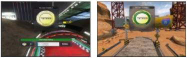 В разных модулях чекпойнты выглядят по-разному, но всех их можно узнать по надписи «Checkpoint». Они разделяют трэк на несколько отрезков. Эти чекпойнты очень выручают при первичном проезде трассы, когда только знакомишься с нею. Бывает, что трасса очень длинная и сложная, и некоторые её отрезки нужно приноровиться проезжать, а начинать всё сначала, чтобы снова спотыкнуться на сложном участке, утомительно. Тогда просто достаточно нажать на кнопку переигровки трассы, и игра продолжится от последнего чекпойнта, который вы проехали.