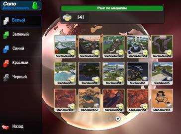 Следующий трэк будет доступен только после выигрыша предыдущего. Причём, если в гонках Белого (самого лёгкого) уровня достаточно выиграть бронзовую медаль, чтобы открыть новую трассу, то в сложных уровнях уже надо добиваться серебряных и золотых медалей.