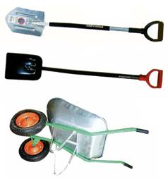 Лопаты и тачку ты без проблем достанешь в ближайшем сельхозмагазине.