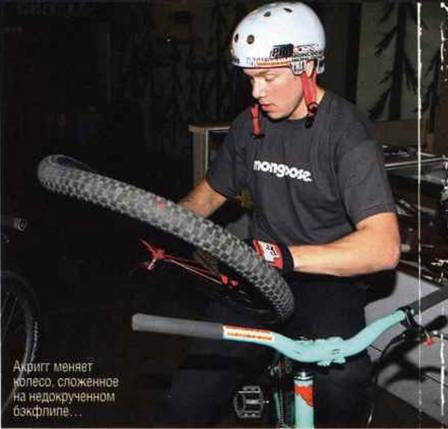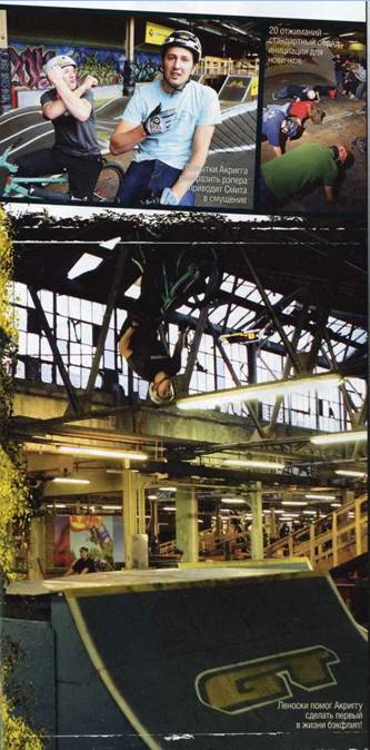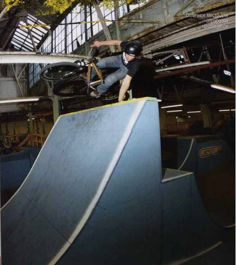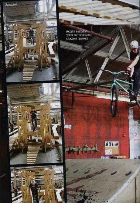 Прежде чем Джефф зажег на норт-шоре, мы решили попробовать пару новых трюков в поролоновой яме и резиновой рампе. Смит пробовал даблвип, триплвип и даже суисайд 360. Акригг решил сосредоточиться на единственном трюке - бэкфлипе. Леноски как раз недавно его освоил, так что воспоминания о процессе обучения были ещё свежими. "Крутка состоит из двух частей, - объяснял Джефф. - Сначала перевернись колёсами вверх, потом найди взглядом приземление". Акригг понимающе кивнул, влез на байк, и поехал разгоняться. Он начал вращение на отходе с трамплина, но на полпути застрял головой вниз. "В деревянной рампе было бы жёстко", - заметил он, вылезая из ямы. После нескольких неудачных попыток его лицо стало более серьёзным: "Надо попробовать закручиваться агрессивнее". Следующая попытка была больше похожа на правду. Еще несколько прыжков, и трюк можно было переносить в резиновую рампу. Резиновая рампа - это рампа с мягким приземлением и гладкой поверхностью. Безопасное приземление делает её отличным инструментом для отработки новых трюков. В первой попытке Акригг недокрутил трюк и сложил переднее колесо. К счастью, у Рея было запасное, и следующей попыткой Крис приземлил свой первый бэкфлип. "До сегодняшнего дня я никогда не прыгал вниз головой, а теперь делаю идеальные бэкфлипы, - сказал он. - Я должен благодарить Рея за то, что освоил их так быстро".