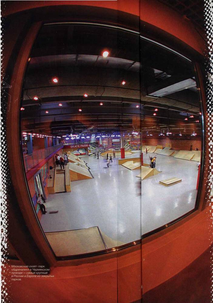 Московский скейт-парк «Адреналин» в Чермянском проезде — самый крупный в России и Европе из закрытых парков.