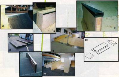 23) Уоллрайд (wall ride): Вертикальные стенки, которые бывают плоскими под девяносто градусов, наклонными или вогнутыми под девяносто градусов. Ещё один элемент, который был позаимствован на улице. Дополняются столами и коупинами на вершине, что даёт дополнительные возможности.