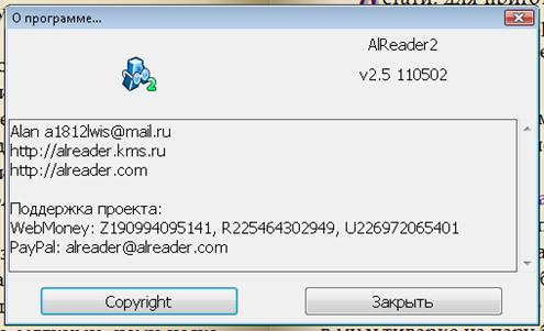 Её можно скачать бесплатно с официального сайта программы http://alreader.kms.ru . Там есть варианты для обычного компьютера и для мобильных устройств типа КПК и коммуникаторов.