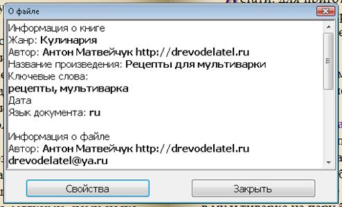 Здесь просто кликните на «Свойства» и узнаете кое-что про книгу.
