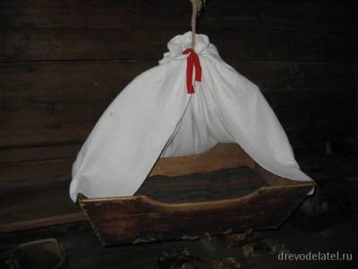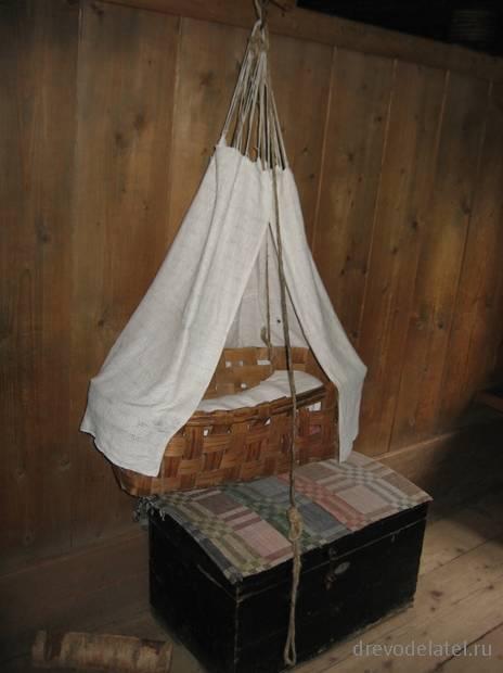 Резюмирую. Русские колыбели отличает как надёжность, так и простота изготовления. Если, изучая проекты современных деревянных люлек в американских журналах по дереву, можно голову сломать – настолько там хитроумные соединения предлагаются, вплоть до целых систем крепления через шарниры-карабины-винты-шайбы-гайки, то здесь, при всей крестьянской изобретательности, всё очень просто и рационально – элементарные верёвочные узлы, и достаточно!