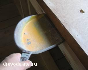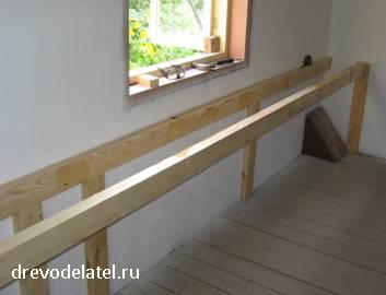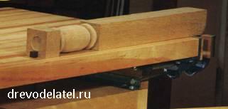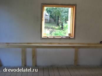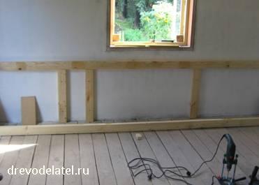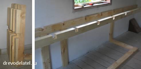 Этот брус закреплён в привинченных к стене стойках с помощью паза, выпиленного электролобзиком.