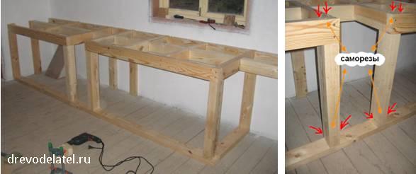 Лицевые брусы подстолья я просто привинтил к поперечным брускам на саморезах.