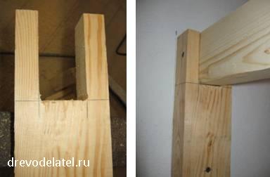 И начинаю собирать жёсткую конструкцию подстолья, скрепляя брусы в полдерева.