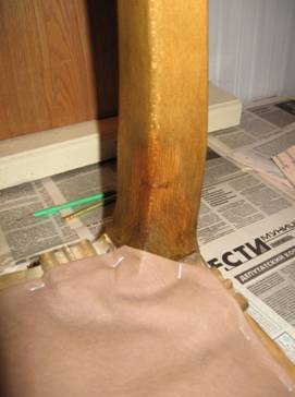Теперь дело за облагораживанием отремонтированной части, чтобы она ничем не выделялась на общем фоне. Попутно я заменяю старую, страшную, обивку новой, более внешне благопристойной.