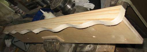 Подобрав материал, я строгаю и пришлифовываю все заготовки согласно рисункам и чертежу. Особое внимание придаётся карнизам — ведь они являются основным украшением полки.