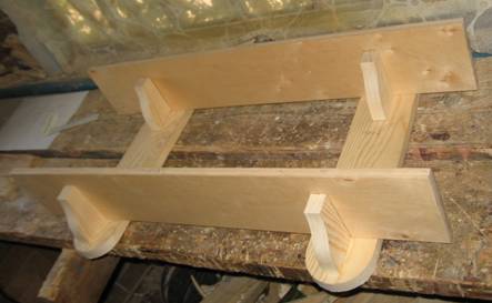 После шлифовки окончательное склеивание карнизов и кронштейнов с полками, и, после высыхания, самая ответственная, самая трудная, самая важная операция — отделка, в данном случае лаком в три слоя.