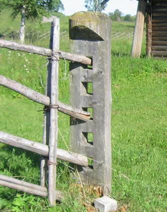 И ремонтировать такие ворота проще простого – просто замени испорченную жердину другой ;-) И проём между столбами может быть какой угодно длины – были бы подходящие слеги.