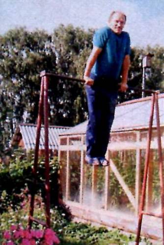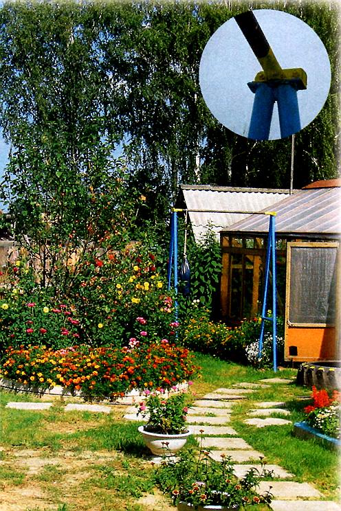 Заботиться о своём здоровье надо в любом возрасте и при этом без спортивных снарядов не обойтись. Например, турник может быть ещё и частью интерьера приусадебного участка.
