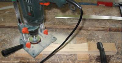 Действительно качественной, удобной и быстрой обработке криволинейных вогнутых кромок поможет другой способ — шлифование с помощью дрели в стойке и самодельного приспособления.