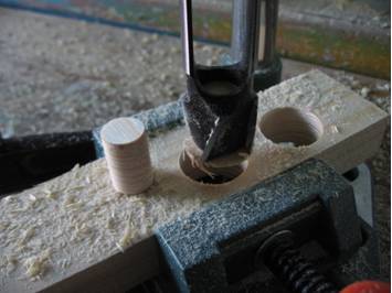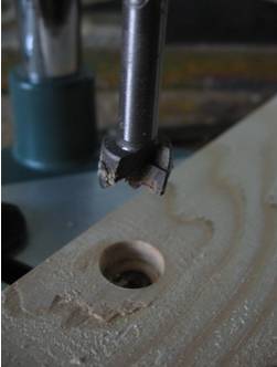 Затем я сверлом Форстнера того же диаметра, что и пробка, высверливаю в детали сучок на нужную глубину.