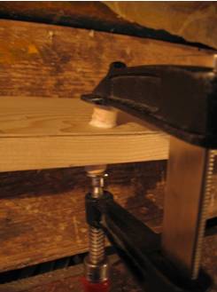 Вклеиваю пробку в углубление, зажав её струбциной.