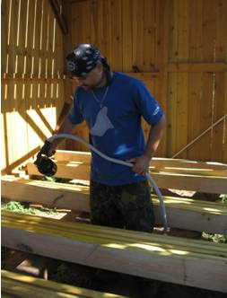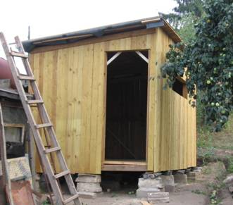 Итак, пора опробовать новинку в деле. И тут очень кстати подвернулась строящаяся сейчас кладовка – её нужно было покрыть антисептиком Сенеж. И пачкаться не надо, и понять, как работать с агрегатом, можно.