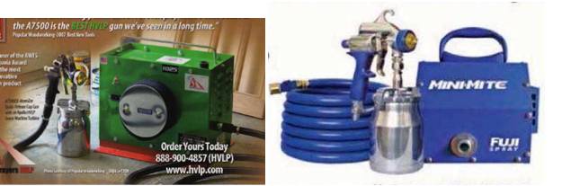 Эти агрегаты окрасочные низкого давления (так они именуются в своих паспортах, далее я буду называть их по-привычному турбинами) хвалятся тем, что при меньшей по сравнению с компрессорами мощности создают равное воздушное давление при распылении, достаточное для качественной отделки промышленными ЛКМ наподобие Sayerlack’а. О покрытии обычными, бытовыми ЛКМ и говорить нечего ;-) При этом у турбин отсутствует пресловутый туман во время покраски (в интернете легко можно найти рекламные видеоролики, где люди работают с турбиной в брючках и белых рубашечках ;-)), и они очень мобильны, благодаря лёгкому весу и небольшим размерам.