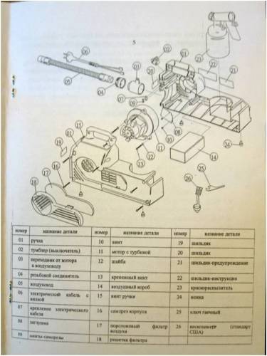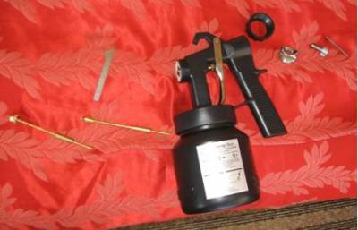 Базовый краскопульт в сборе очень прост, деталей немного, его сборка-разборка не вызывает никаких затруднений.