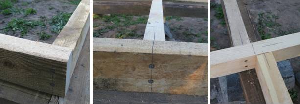 Можно ещё использовать традиционные плотницкие соединения – хитроумные пазы и шипы, при которых вполне можно обойтись без гвоздей. Но такая работа очень кропотлива и сложна, мы же решили не усложнять себе и без того тяжкую жизнь ;-)