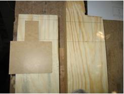 Затем намечаю шипы и пазы на концах брусов, убыстряя разметку шаблоном.