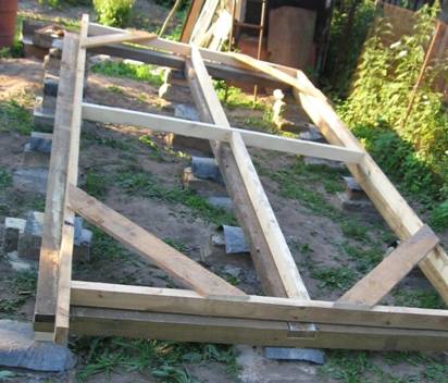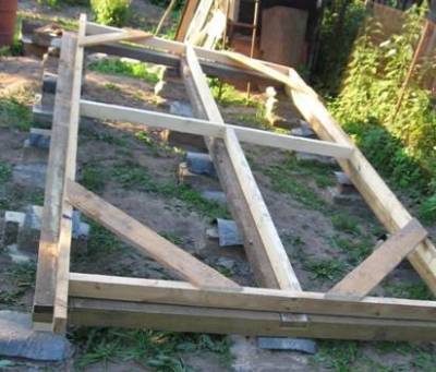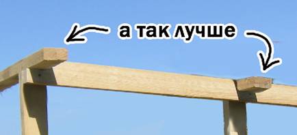 Лучше не полениться и сделать в поперечине пазы под выпуски стропил, чтобы по при соединении и поперечина, и концы стропил образовывали по верху единую линию.
