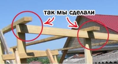 Второй нюанс – мы поперечину на торцевую стену просто прибили под выпуски стропил.