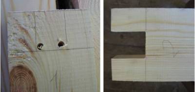 Далее, приложив шипы к горизонтальным брусам, размечаю пазы.