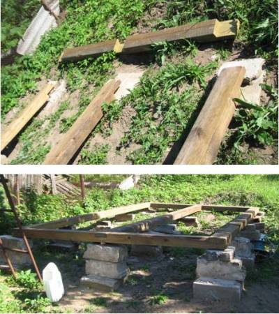 А вот потом мы сделали фундамент – несколько столбиков под основание кладовки.