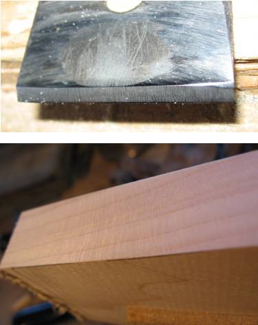 По ходу работы с этим рубанком пару-тройку раз достаточно снова поправить железку на войлочном круге с пастой ГОИ, а затем, когда лезвие совсем затупится, снова поточить на точиле.