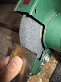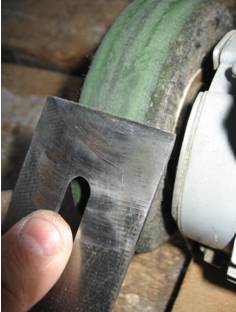 Точим её на точиле, выводя ровную и острую до тонких заусенцев режущую кромку.
