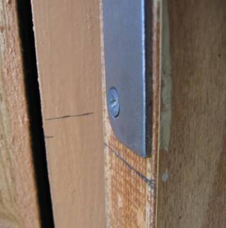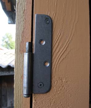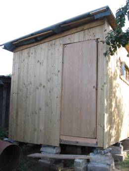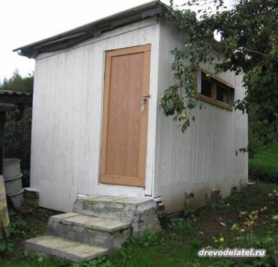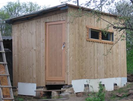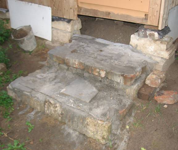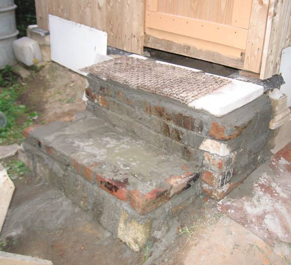 Помимо окончательной отделки и обвески двери, мы заделали подручным материалом (в нашем случае – железками от старого холодильника) низы. И осталось последнее, но самое главное – ступеньки!