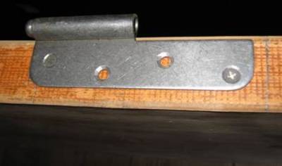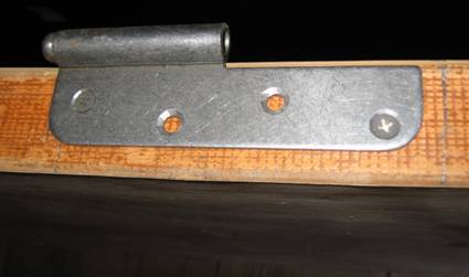 Привинчиваю к двери петли, пока не во все отверстия, а прихватываю по два самореза на петлю.