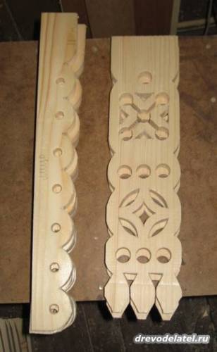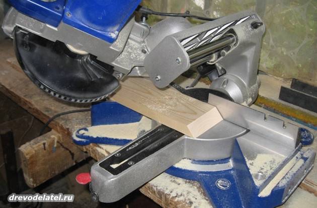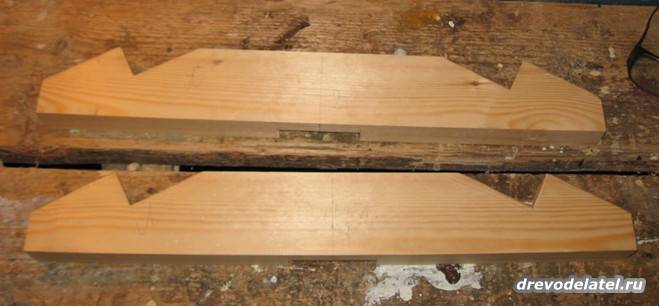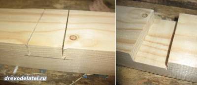 И выпиливаю лобзиком в поперечных брусах стоек пазы для брусов крыши.