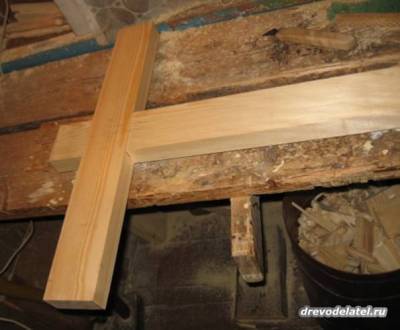 На собранных стойках-крестовинах отмечаю скосы для крыши,