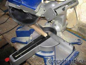 Запиливаю точно под размер «на ус» (то есть в угол 45 градусов) подготовленные рейки.