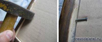 После забивки гвоздика утапливаю его шляпку в картон. Теперь гвоздик надёжно прижимает задник.