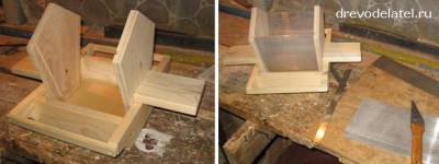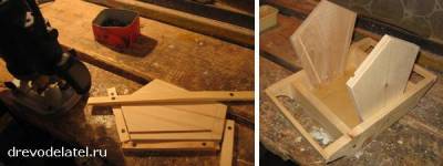 В стенках фрезерую пазы для окошек, привинчиваю стенки к коробке кормушки.